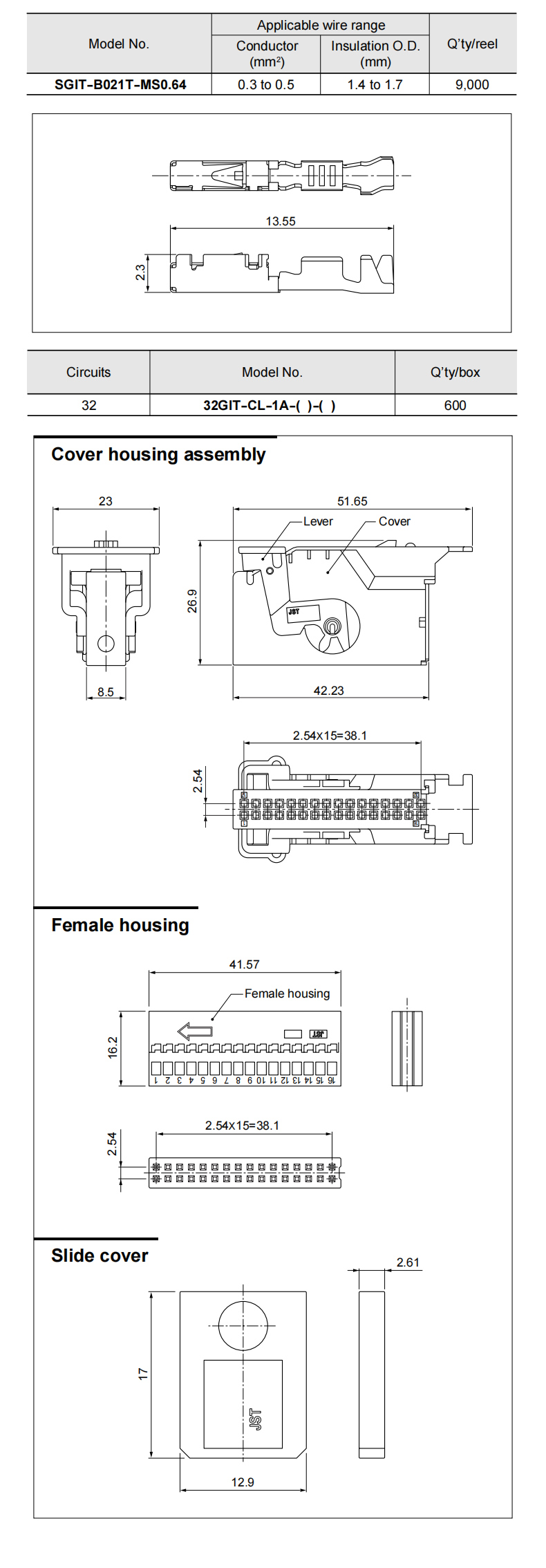 间距2.54mm,0.64非密封表面安装型连接器采用自动共面技术。